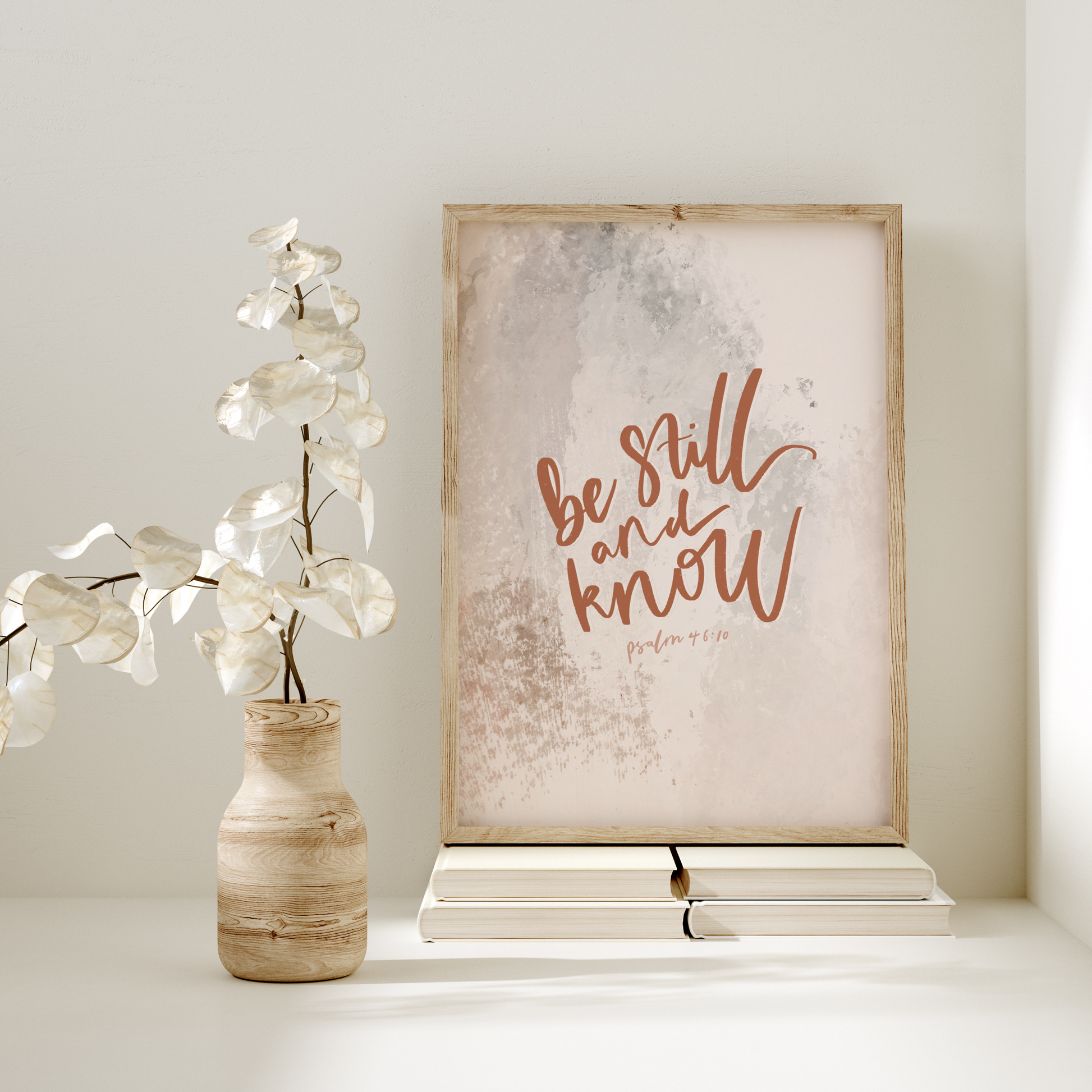 A beautiful and peaceful reminder to be still and know. This art piece has been painted by Sharmila Joy and reproduced as a print.
