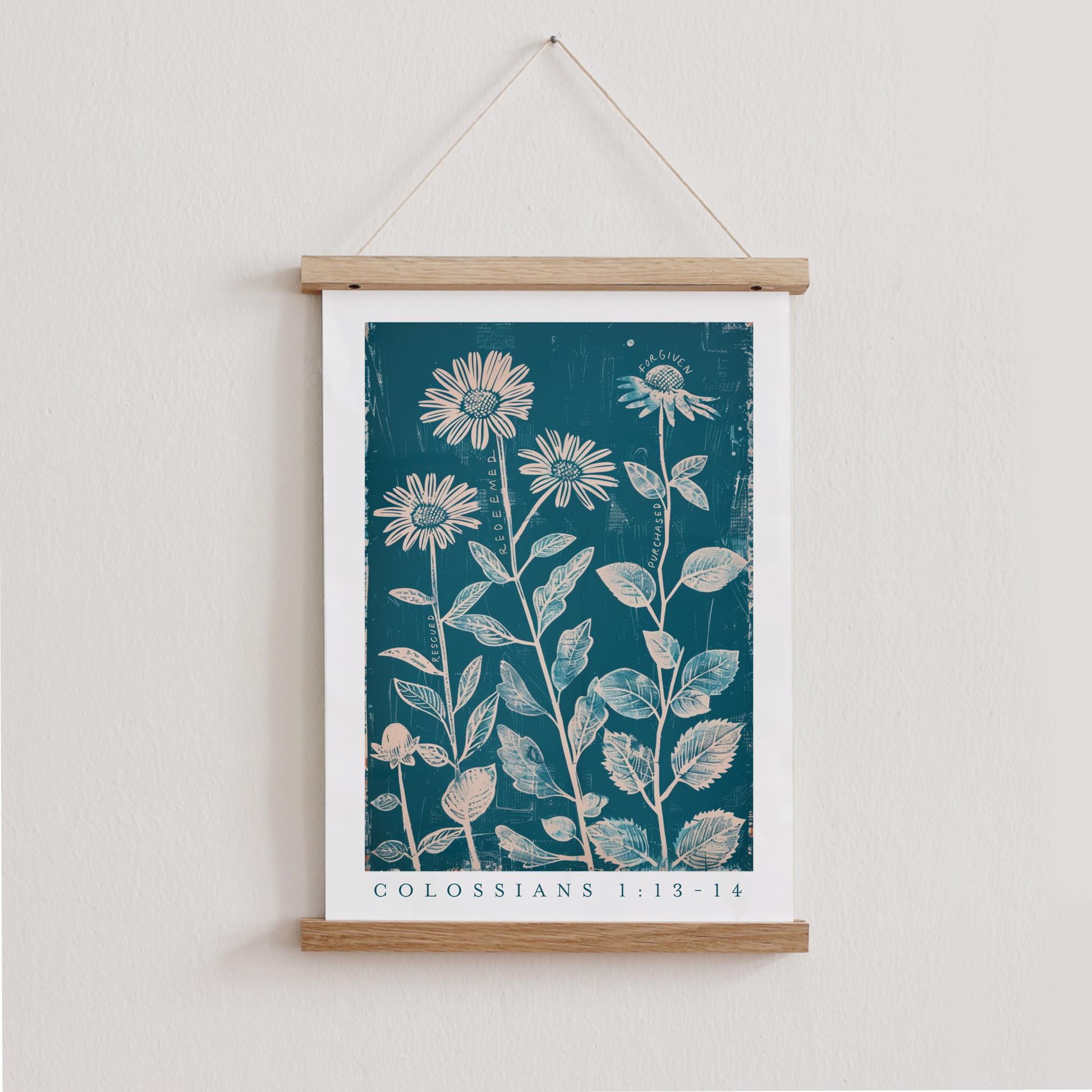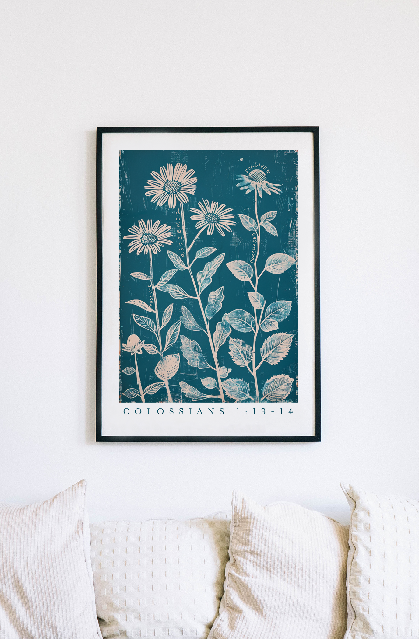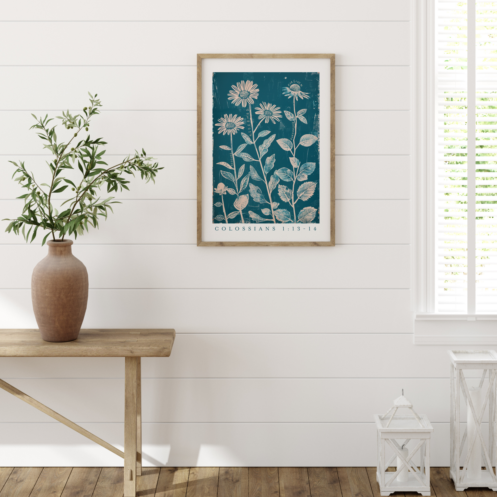 A beautiful art piece based on Colossians 1:13-14, by Sharmila Joy.