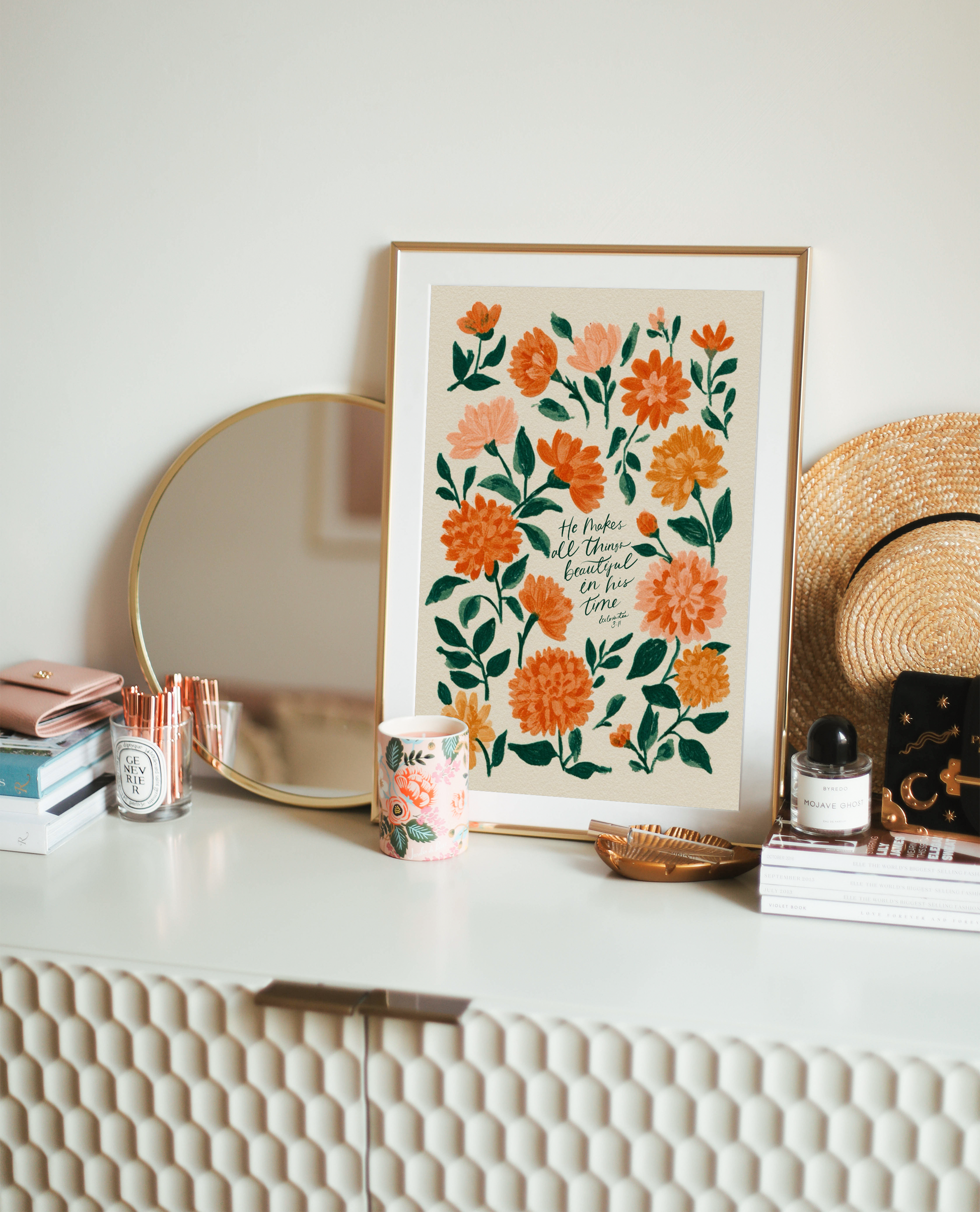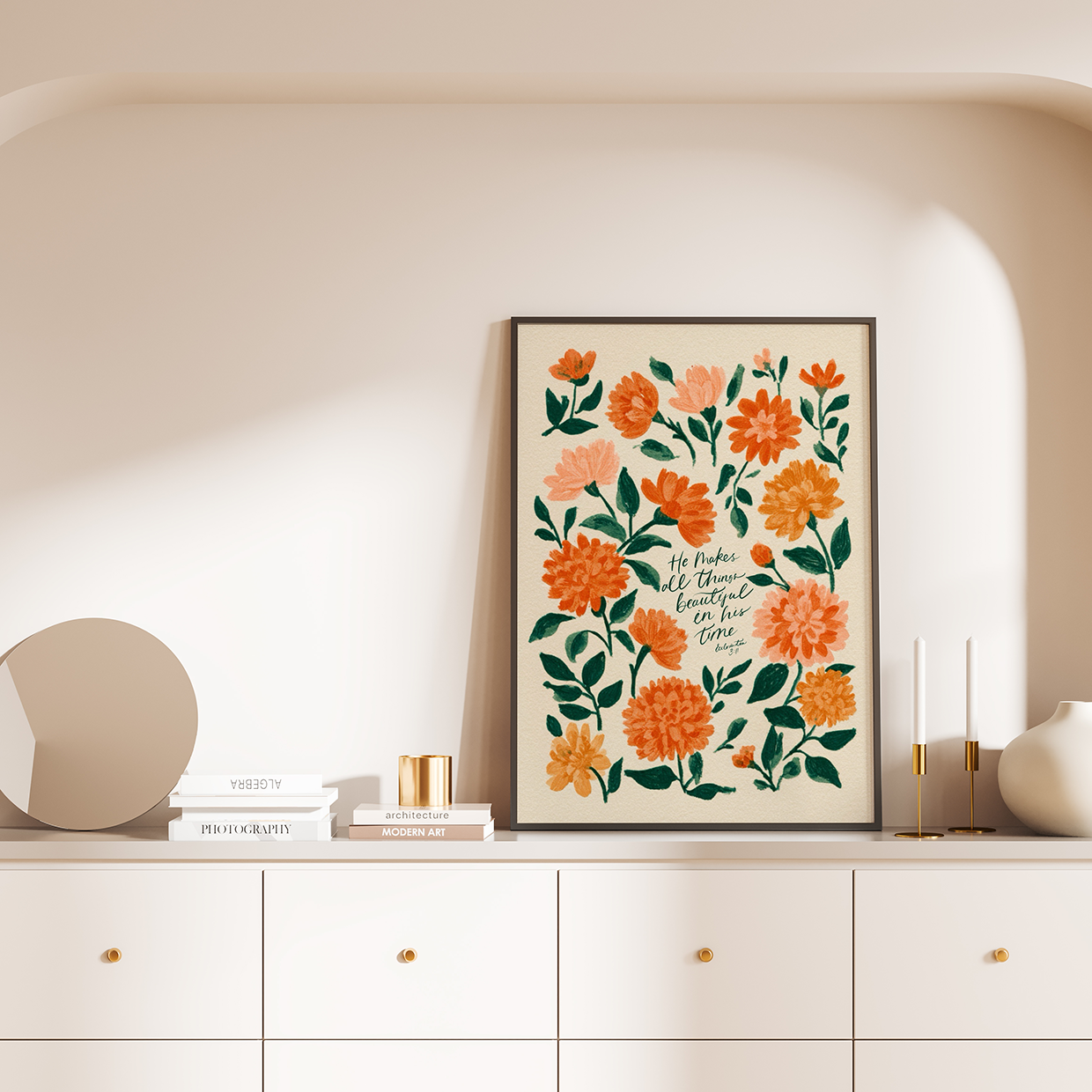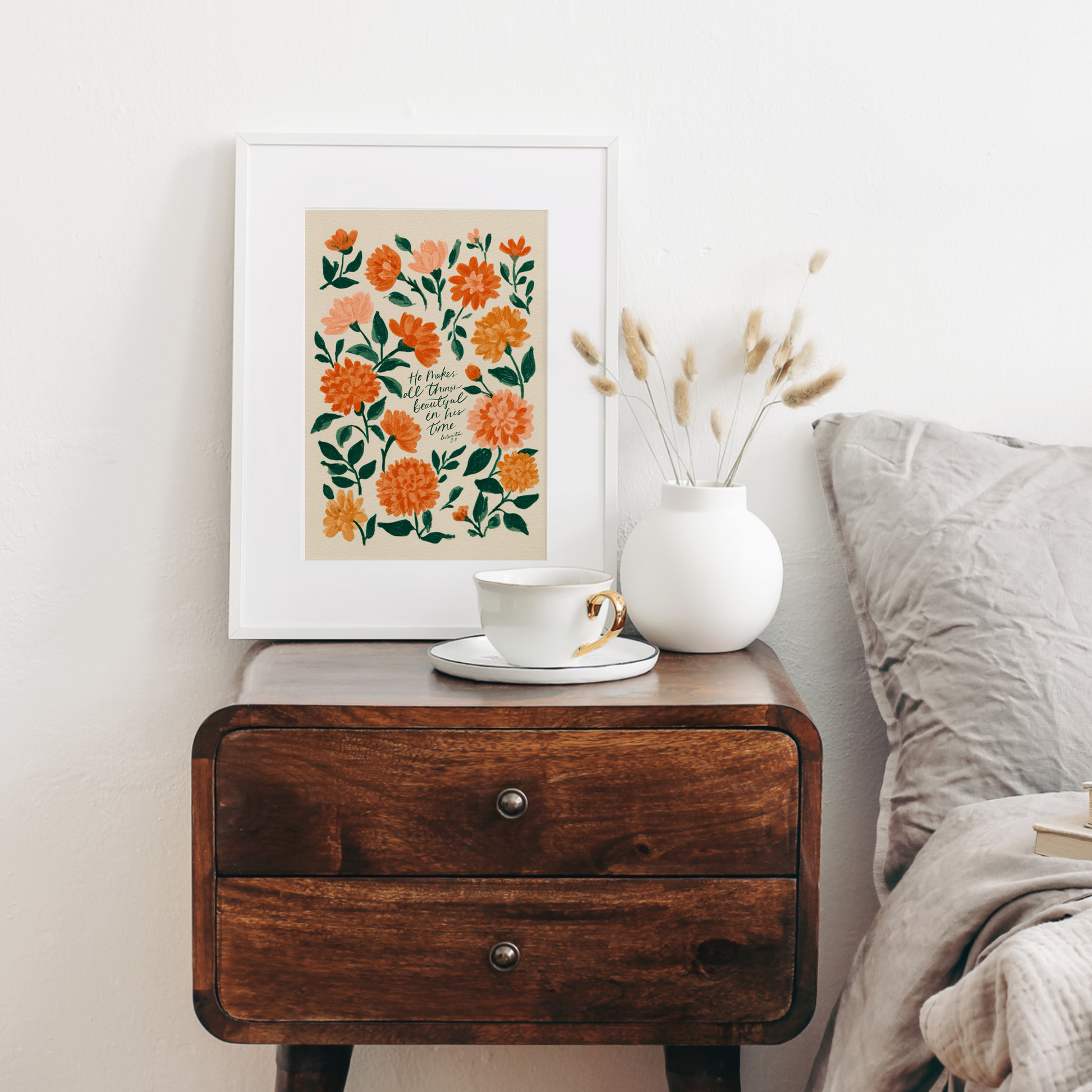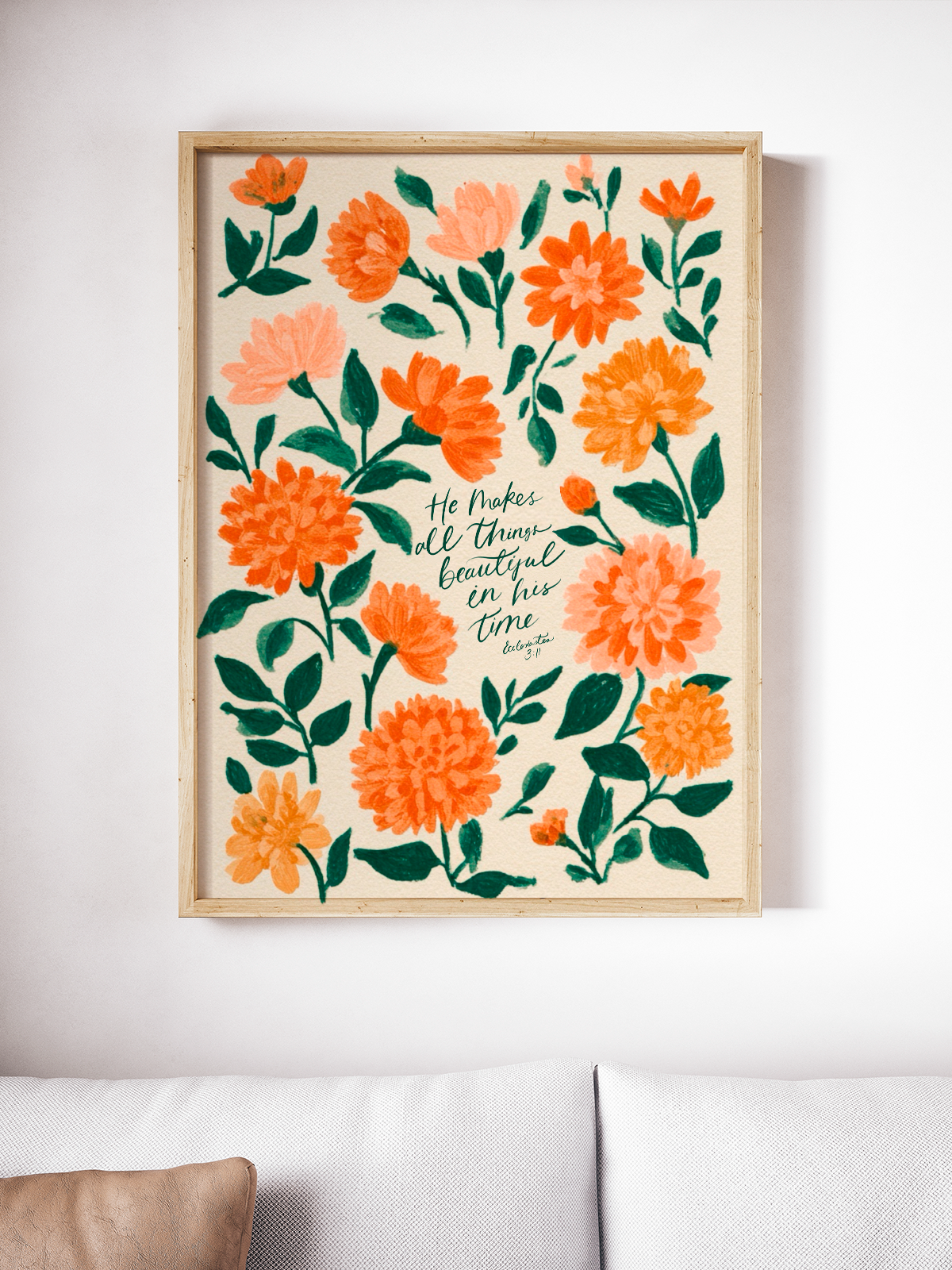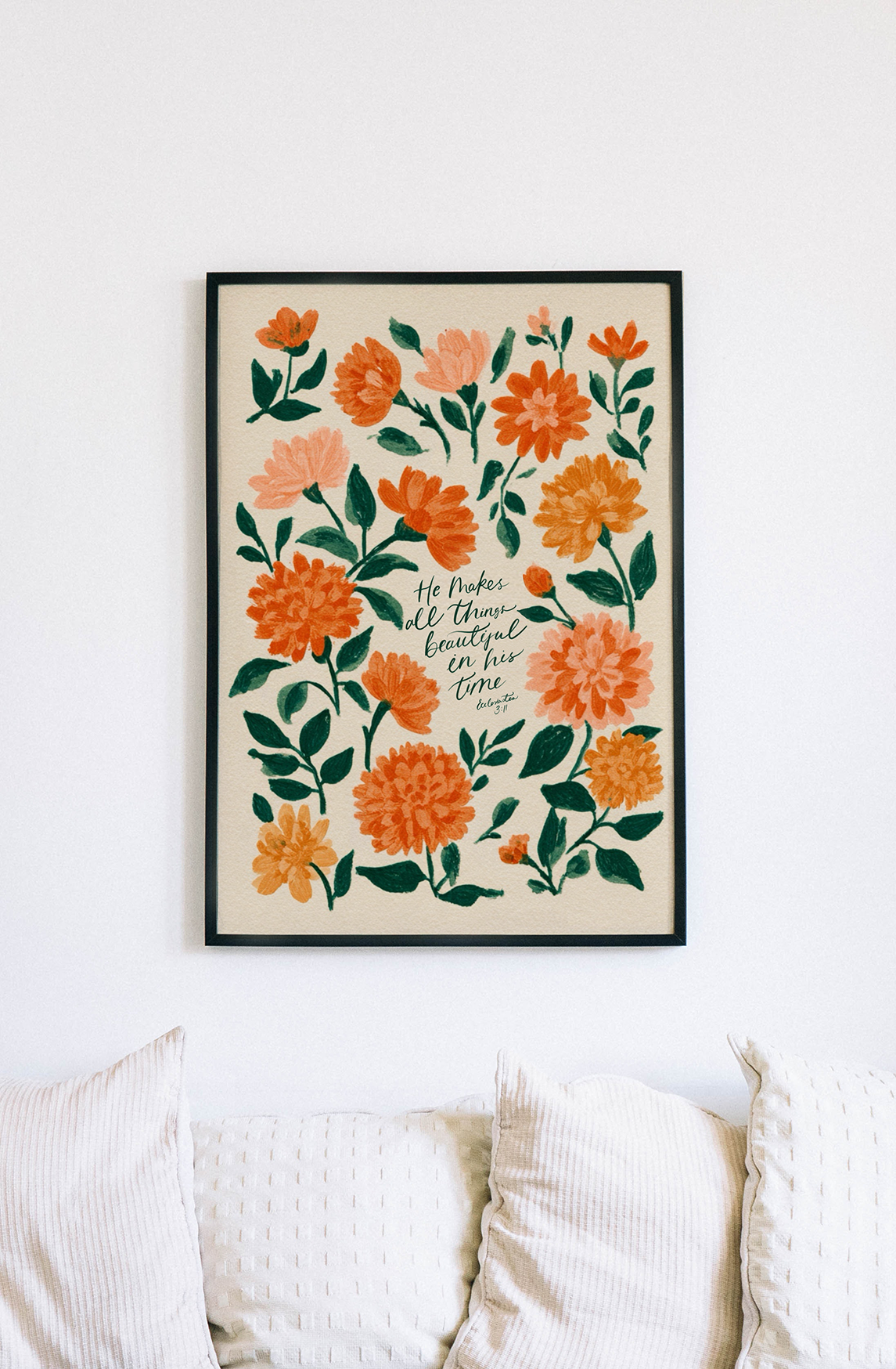 This elegant Christian floral wall art brings peace and purpose to your space with its soft botanical design and timeless scripture. Perfect for any room, this Bible verse wall art makes a thoughtful gift and a daily reminder of God’s perfect timing. A beautiful blend of faith decor and floral inspiration for all.