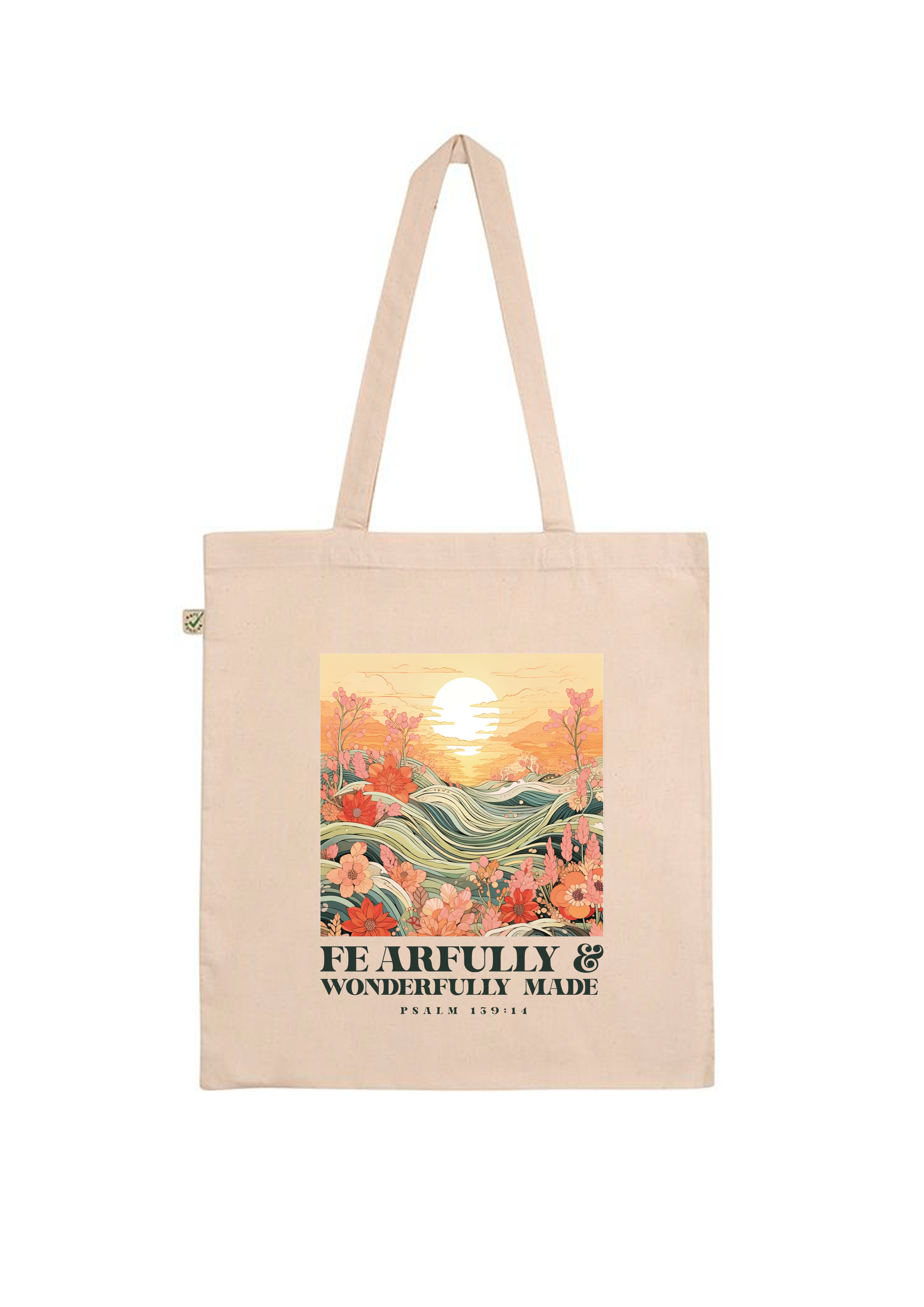 A stylish tote, with words of truth from the Bible (Psalm 139).