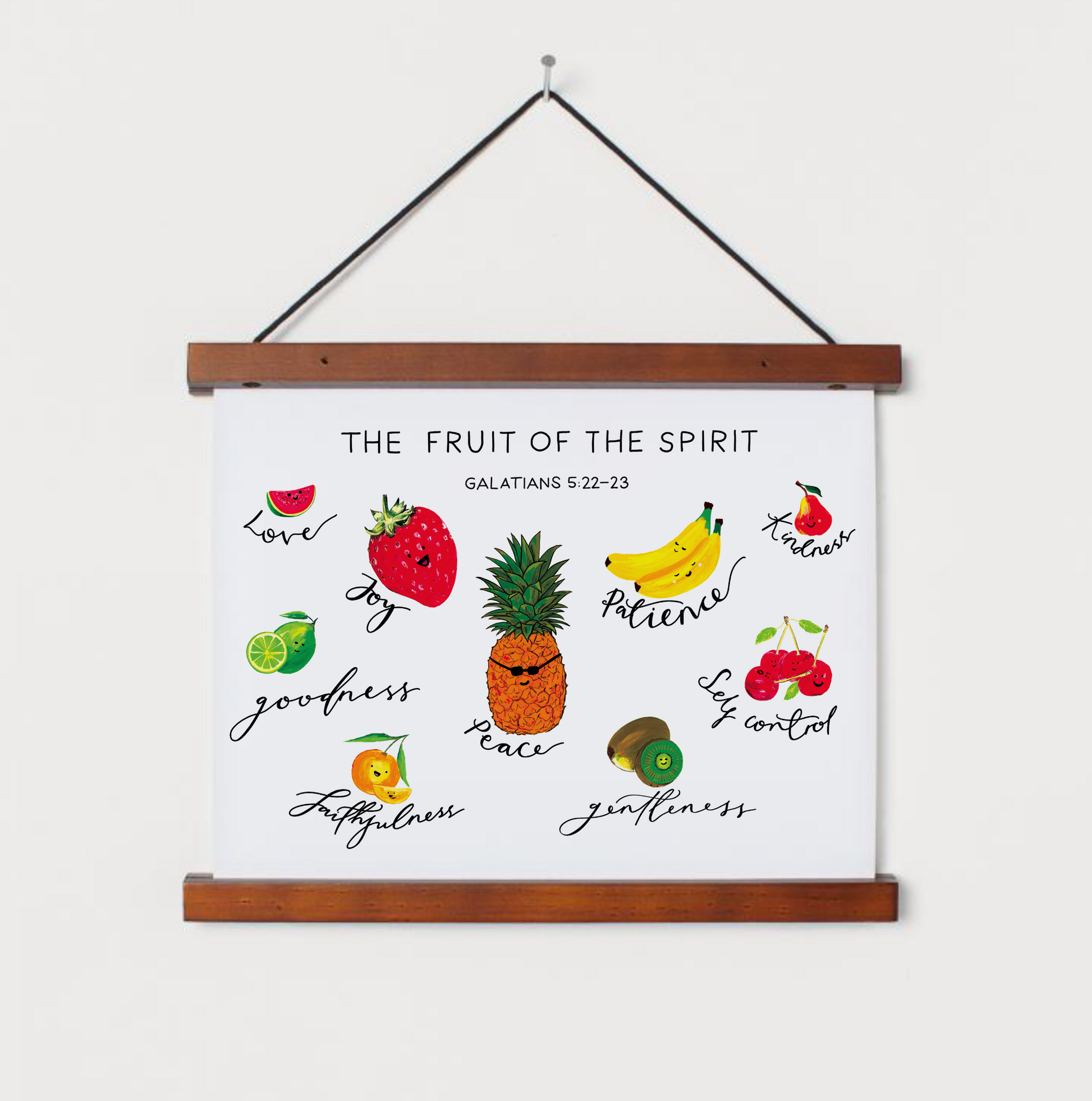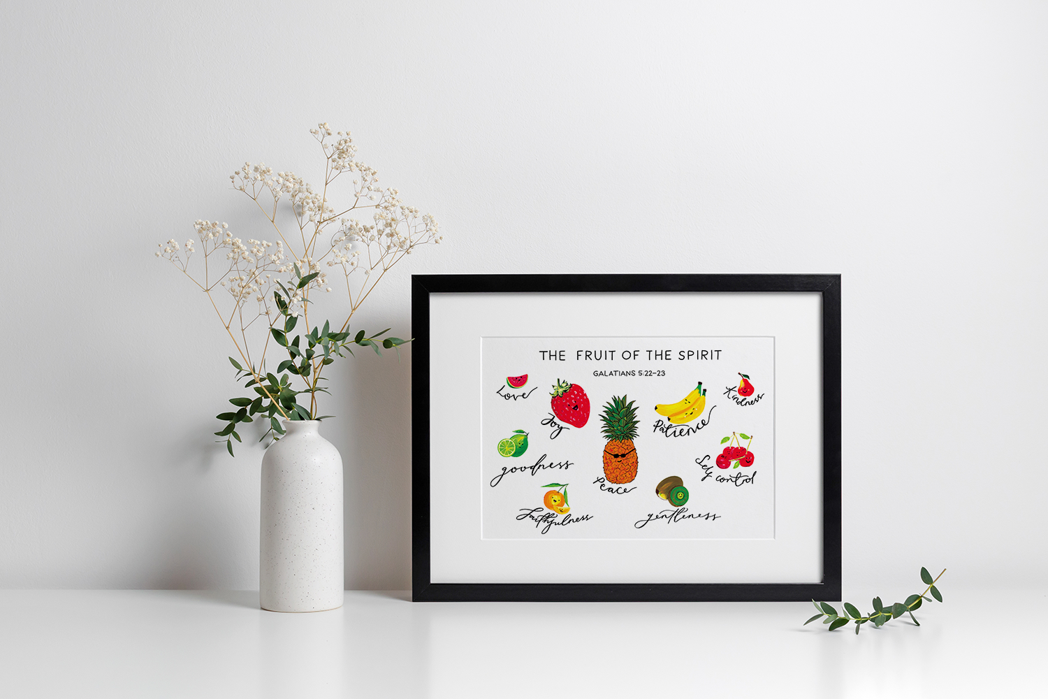 A wonderful display of the Fruit of The Spirit with fun illustrations by Sharmila Joy. This print makes a wonderful addition to any home and works perfectly in areas like kitchens and dining rooms! A popular print for families who enjoy bringing The Word of God into their homes.