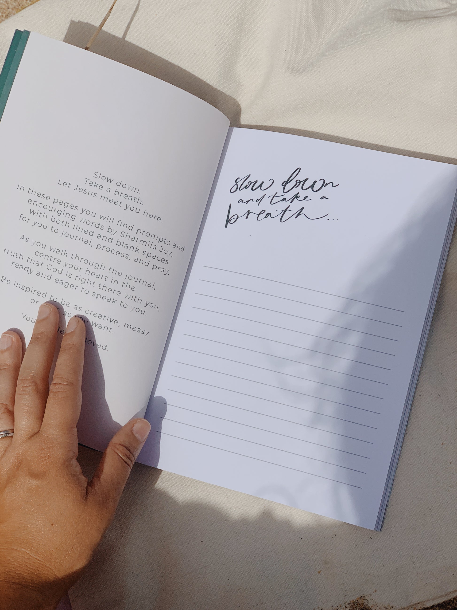 With a mix of lined and plain pages, this journal is full of hand lettered prompts, and encouraging words by Sharmila Joy.