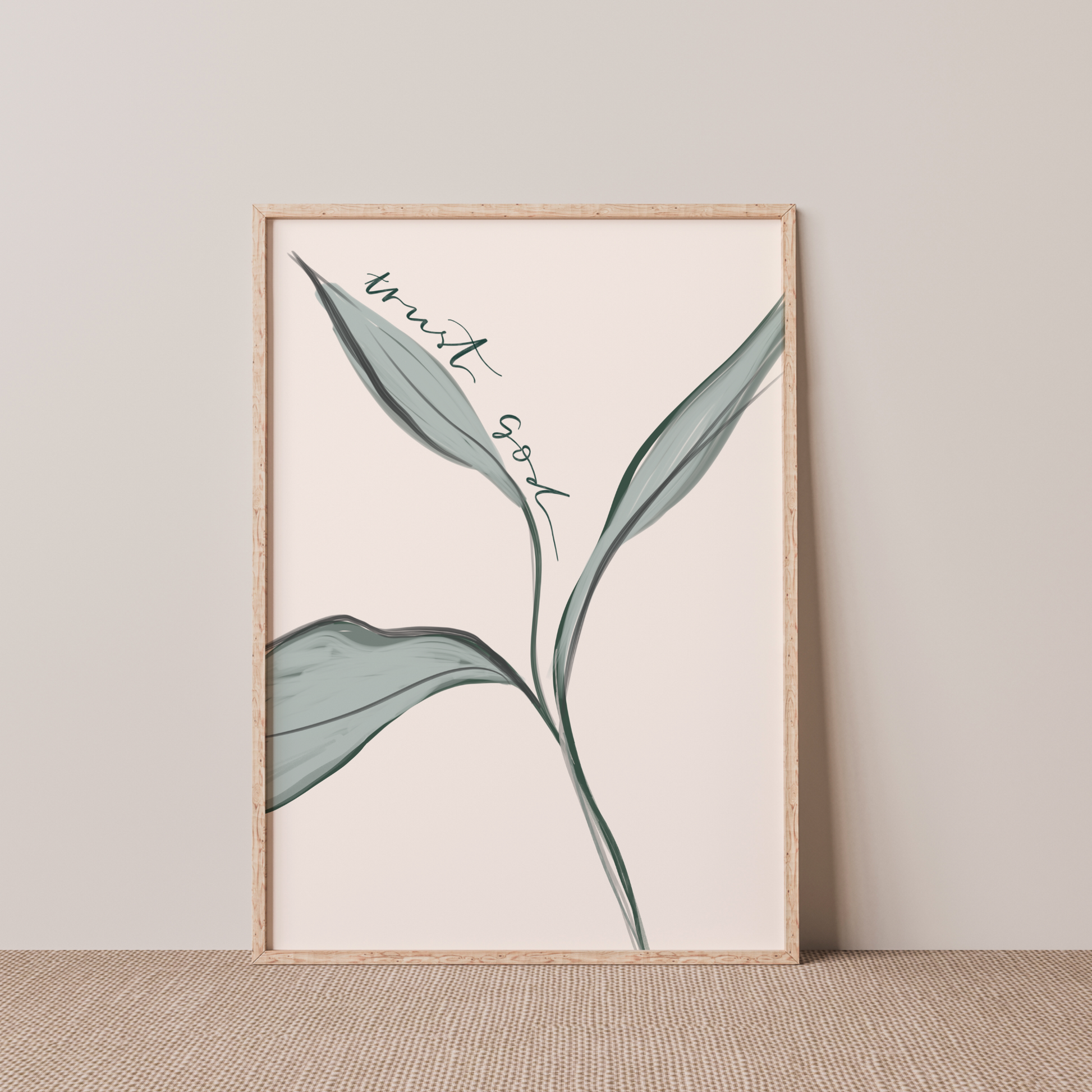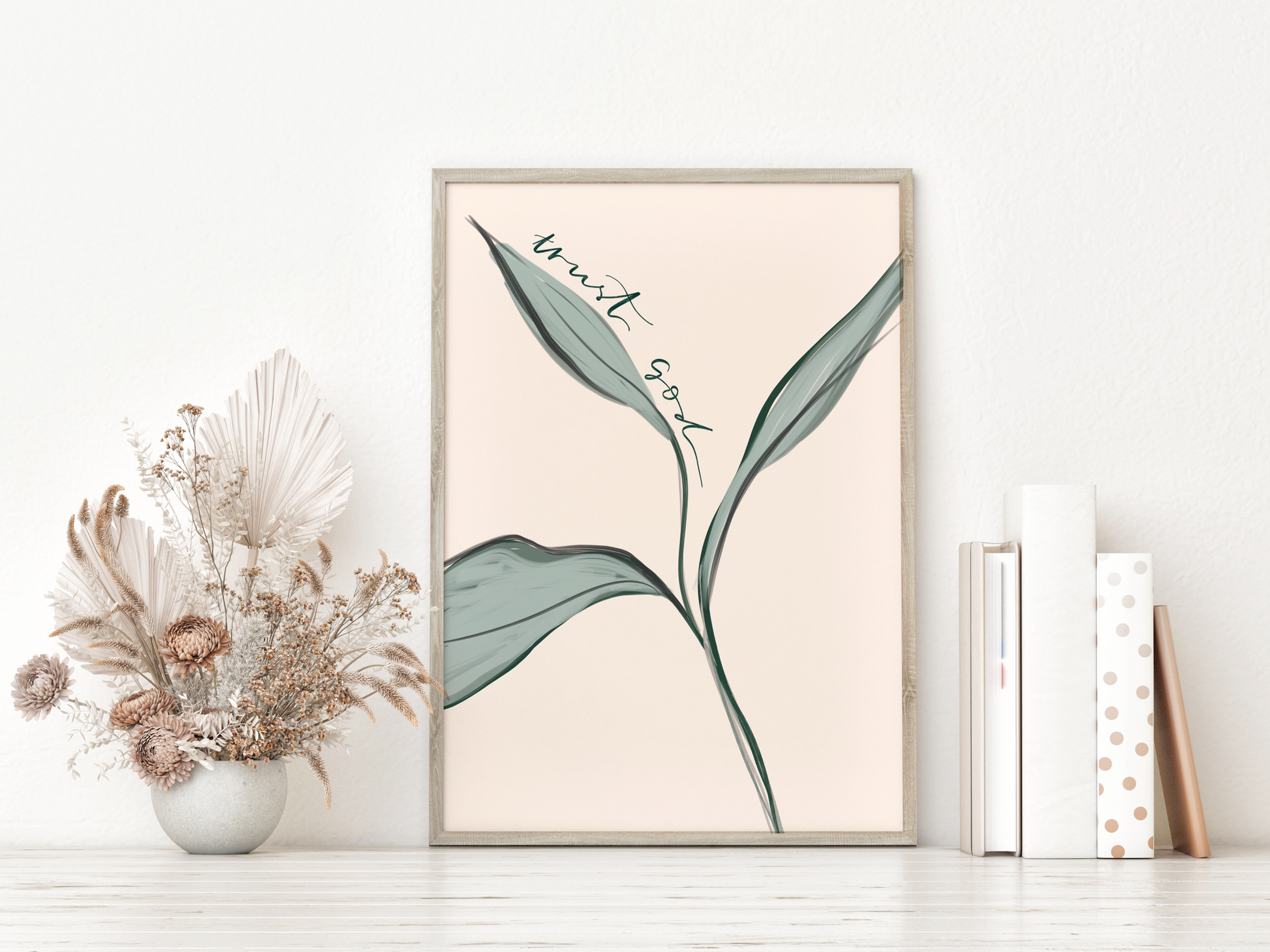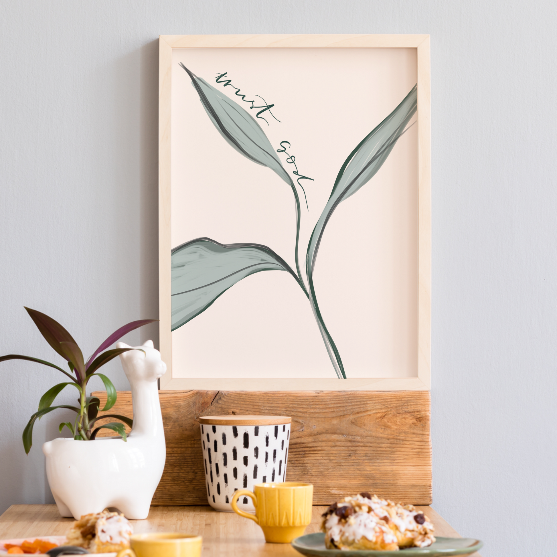 A reminder to trust God, with an illustrated leaf by Sharmila Joy. This modern theme lends itself beautifully to any area in a home, church or office.