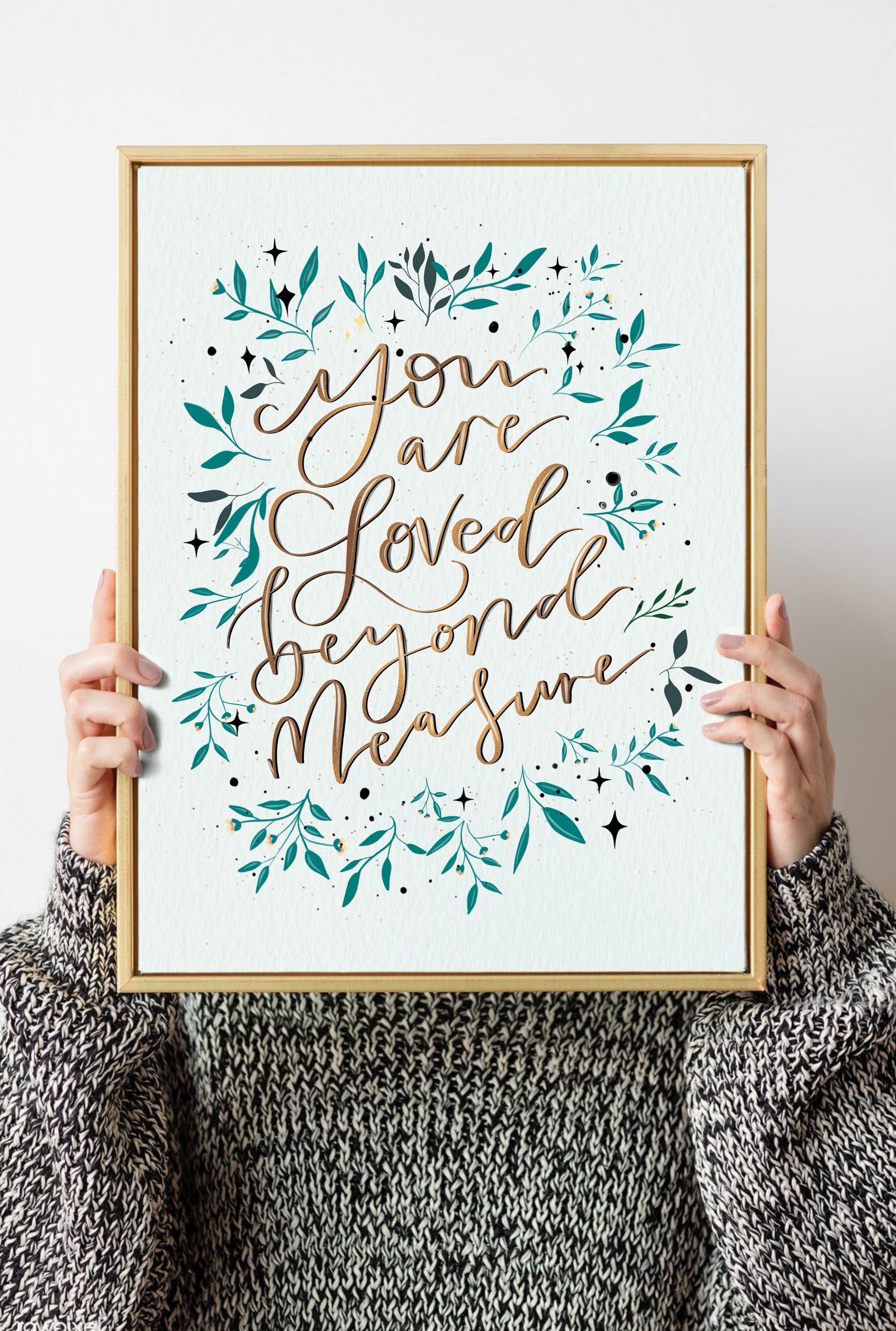 A beautiful reminder that you are loved beyond measure. Hand-lettered by Sharmila Joy, suited perfectly for an encouraging gift to adults and children! This modern hand-lettered theme really lends itself beautifully to any area in a home, church or office.